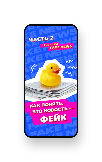 Решение: онлайн-курс про фейк-новости в формате сторис, рассказывающий об их природе и механизмах распознавания.